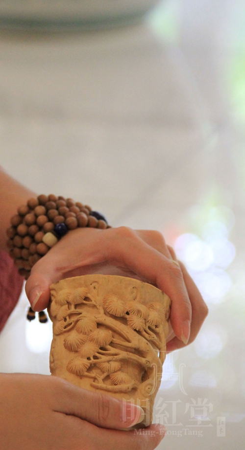 品 鉴:此笔筒以黄杨木制器,通体采用全手工模式打造,以高浮雕技法雕饰万年松图,松枝沧劲,松结铮